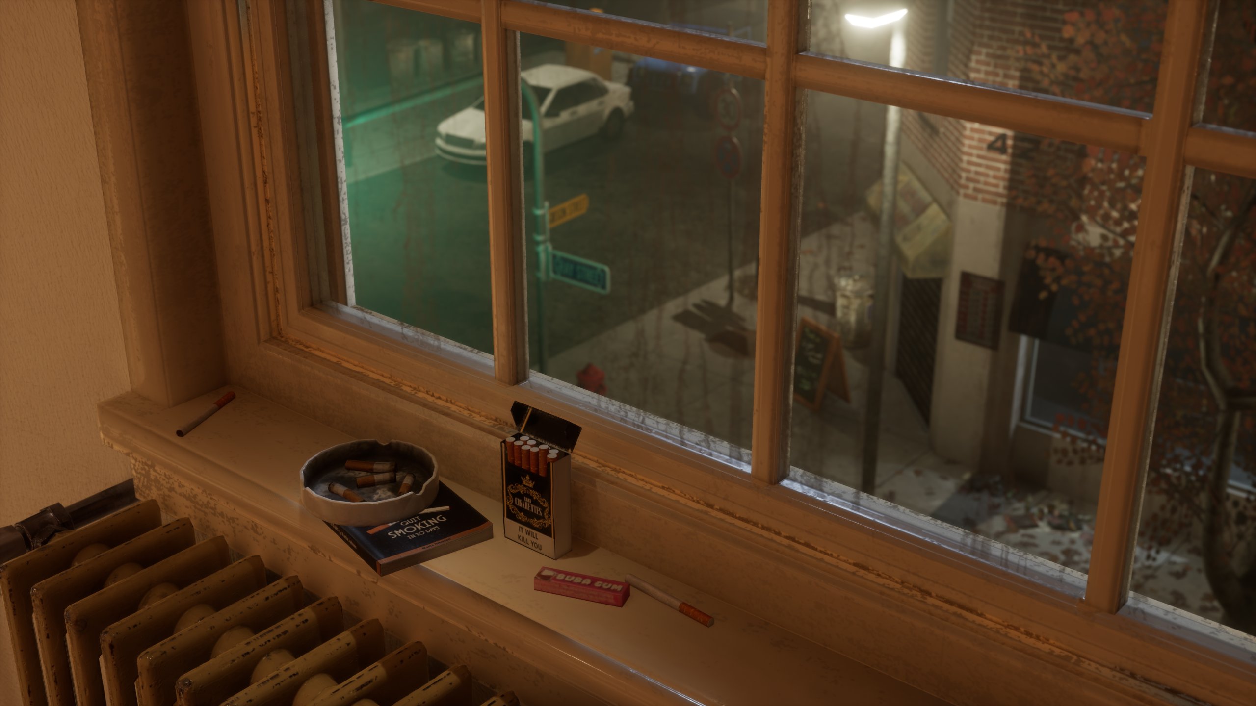 • Large gameplay variety: Few core mechanics, complemented by various context-dependent actions: In-game web searches, fighting compulsive thoughts, hiding from neighbors, acting out a fictional puppet theater, …